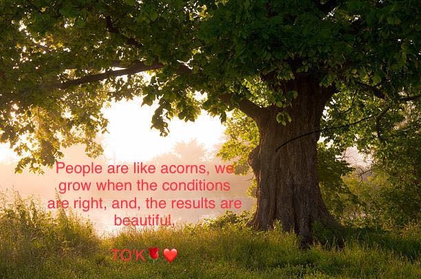 People are like acorns, we grow when the conditions are right, and, the results are beautiful,