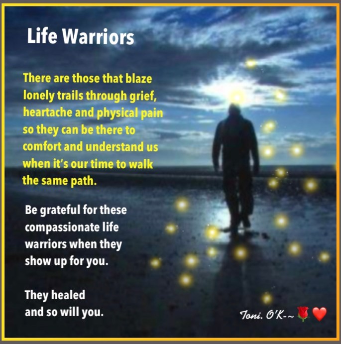There are those that blazes lonely trails through grief, heartache and physical pain so they can be there to comfort and understand us when it’s our time to walk the same path.