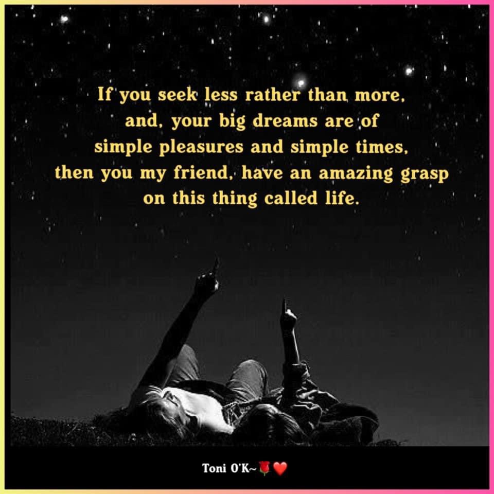 If you seek less rather than more, and, your big dreams are of simple pleasures and simple times, then you my friend, have an amazing grasp on this thing called life.