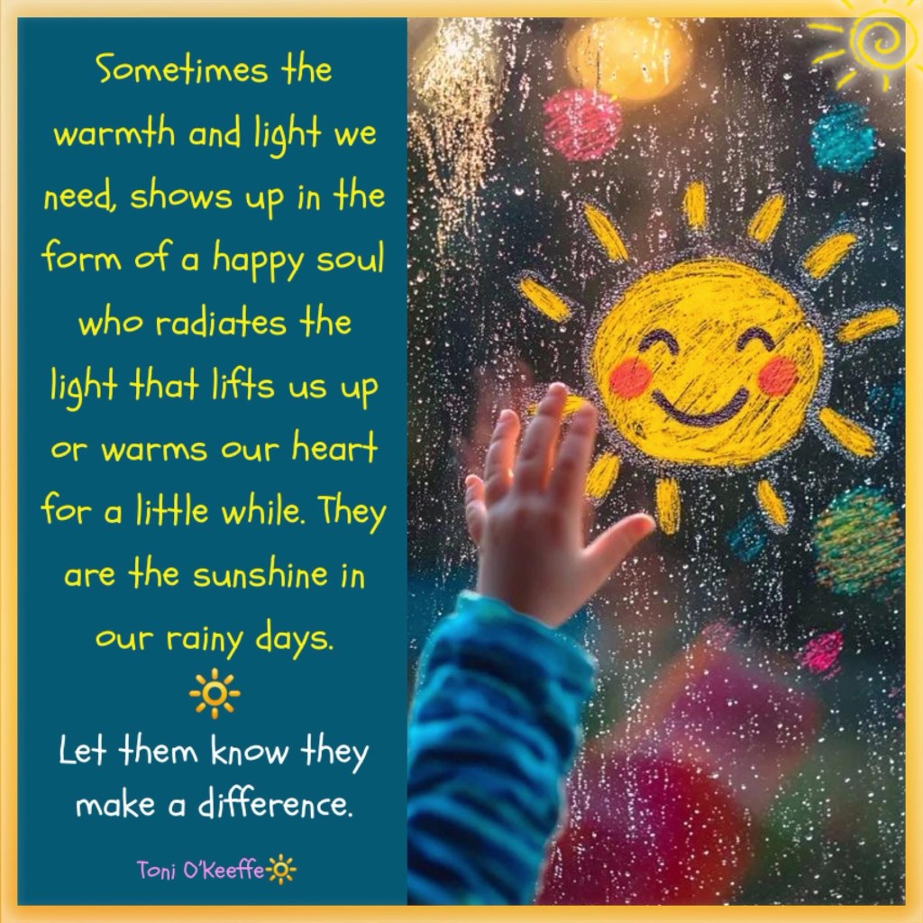 Sometimes the warmth and light we need, shows up in the form of a happy, cheerful, little soul who radiates the light that lifts us up and warms our heart for a little while. They are the sunshine in our rainy days.